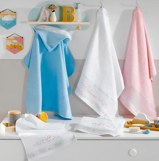 Toalha felpuda encorpada, macia e confortável proporciona todo o conforto após o banho do bebê, esbanja charme e delicadeza com motivos infantis em jacquard na barra.