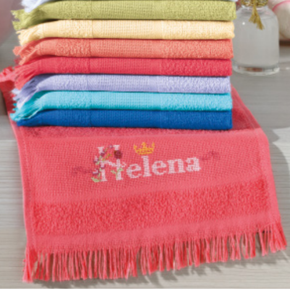 Toalha de mão ideal para bordar ponto cruz ou a máquina com 29 pontos na altura da barra, confeccionada em felpa 100% algodão, com 260 g/m2.Possui acabamento em franjas.
