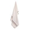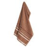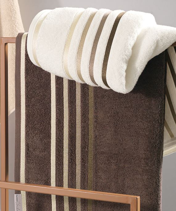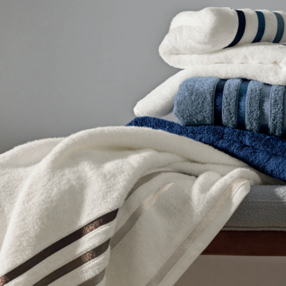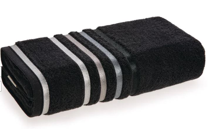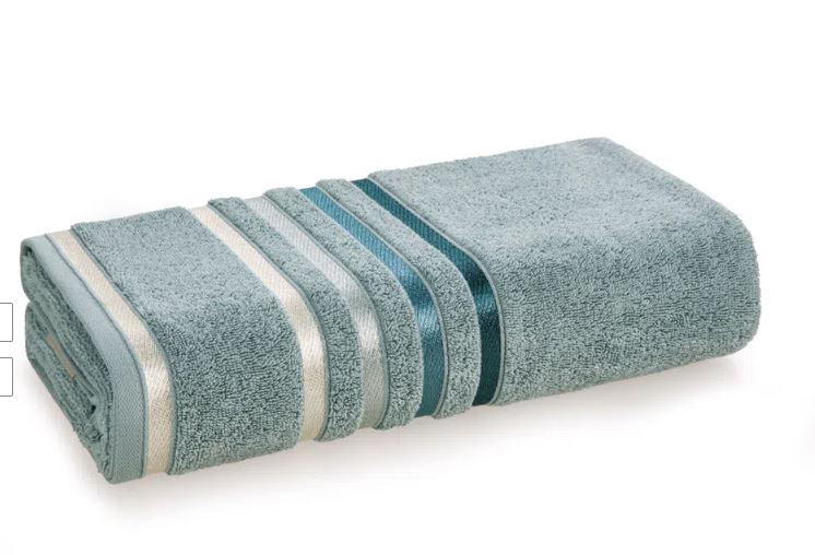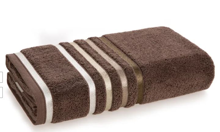 Uma toalha bonita, com listras na sua barra em cor contrastante degradê, montando um visual imponente para o ambiente.